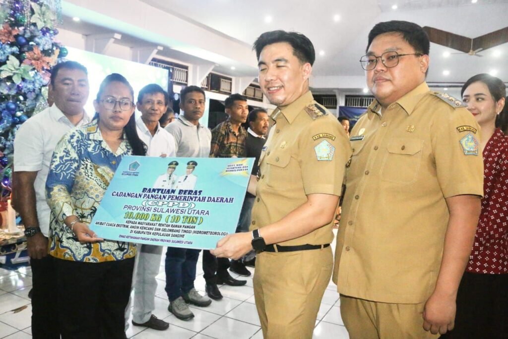 Bupati dan Wakil Bupati Kab. Sangihe memberikan bantuan  kepada masyarakat rentan rawan pangan.