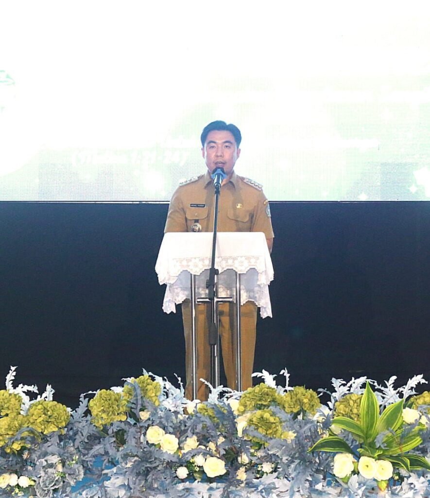 Bupati Kabupaten Sangihe Michael Thungari, memberikan sambutan Natal (Foto : e’Q)