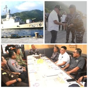 Kehadiran KRI Nala di pelabuhan Nusantara Tahuna disambut Wakil Bupati Kabupaten Kepulauan Sangihe Thendris Bulahari, didampingi, Kapolres Sangihe AKBP Abdul Kholik, S.H., S.I.K., M.A.P., Komendan Lanal Tahuna Kolonel Laut (P) Hadi Subandi, M.Tr.Hanla., Dandim Kodim 1301 Sangihe, perwakilan Kejaksaan dan perwakilan Pengadilan Tahuna.