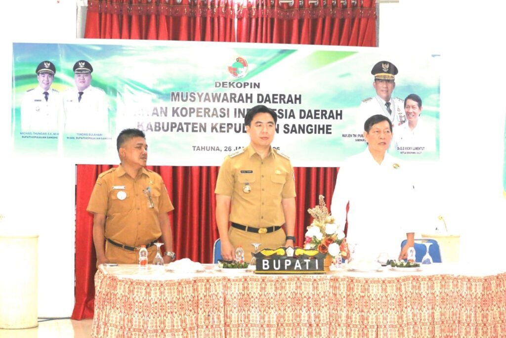 SANGIHE, ⭐Bintangnusautara.com – Disaksikan langsung ketua Dewan Koperasi Indonesia Wilayah Sulawesi Utara Dr. Ir. Godbless Sofcar Vicky Lumentut, S.H., M.Si., D.E.A, Bupati Michael Thungari secara resmi membuka Musyawarah Daerah Dewan Koperasi Indonesia Wilayah Kabupaten Kepulauan Sangihe, bertempat di ruang rapak rumah jabatan Bupati, Senin (26/01/2026).